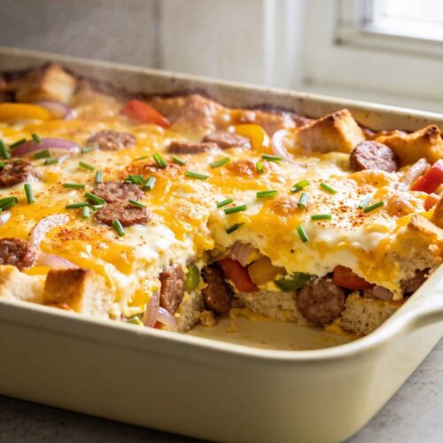 Absolutely! This casserole works wonderfully as a vegetarian dish. Simply omit the sausage and add extra vegetables like mushrooms, zucchini, or spinach. You might want to increase the cheese slightly to maintain the heartiness of the dish.