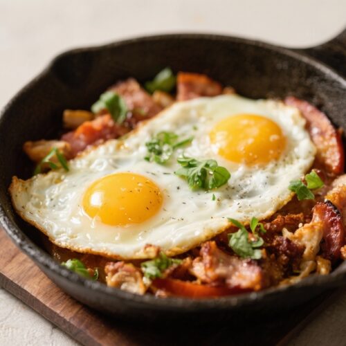 This skillet is what you make when you want a hearty breakfast without a lot of fuss. It’s loaded with eggs, lean protein, and veggies, all cooked in one pan for easy cleanup. The flavors are comforting and familiar—savory, a little smoky, and satisfying.