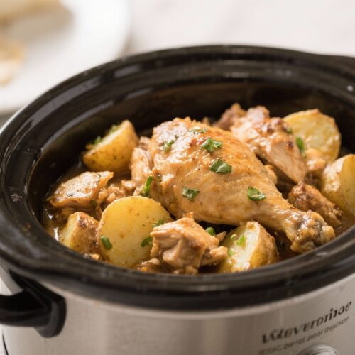 For freezing, remove the chicken from the bone (if using bone-in) and store the meat and potatoes with a bit of sauce in freezer-safe containers or bags. Freeze for up to 3 months.