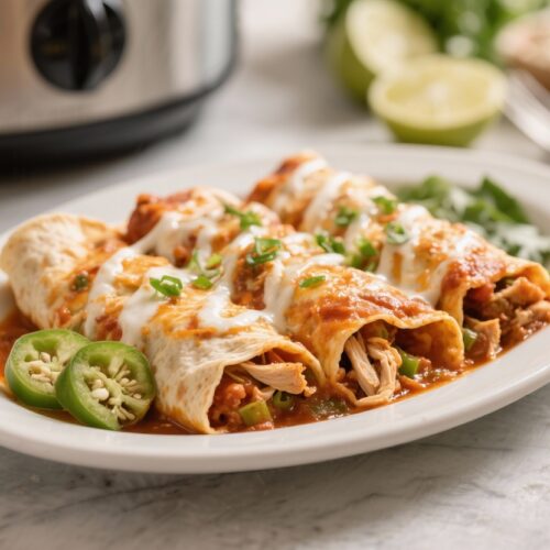 There’s something comforting about a pan of cheesy chicken enchiladas, and it gets even better when the slow cooker does most of the work. This version keeps things simple without skimping on flavor. You’ll get juicy, shredded chicken, a rich, gently spiced sauce, and melty cheese—all wrapped in soft tortillas.