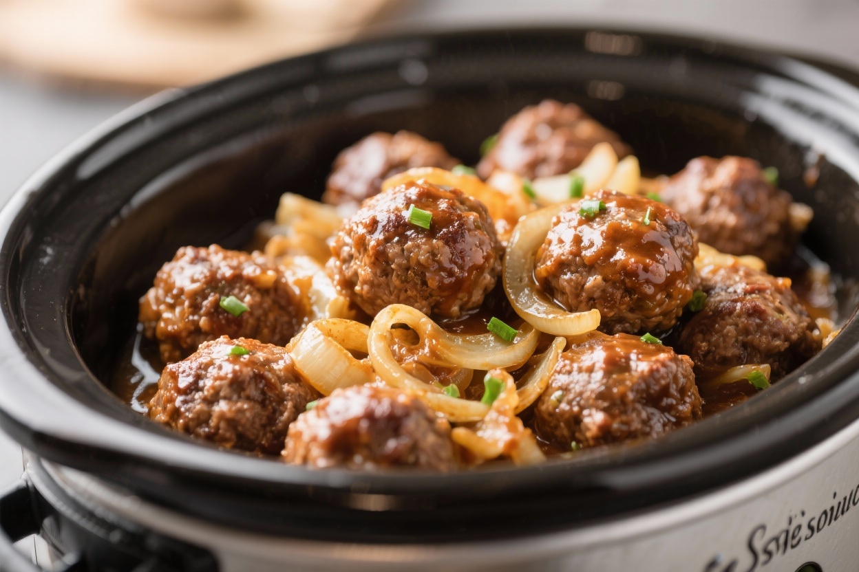 Slow Cooker French Onion Meatballs – Cozy, Savory, and Easy