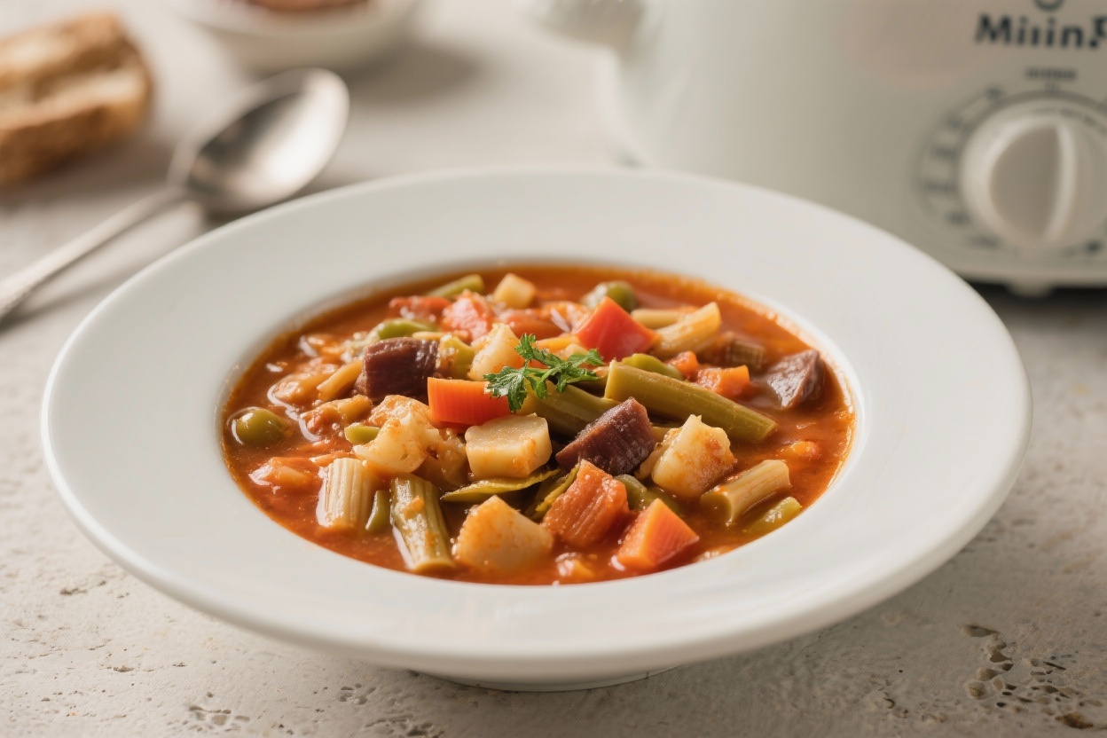 This is the kind of soup that makes a chilly day feel warmer the second it hits the table. It’s loaded with vegetables, beans, pasta, and herbs—all simmered slowly so the flavors meld beautifully. The slow cooker does the heavy lifting, so you can focus on your day and come back to a pot of comfort.